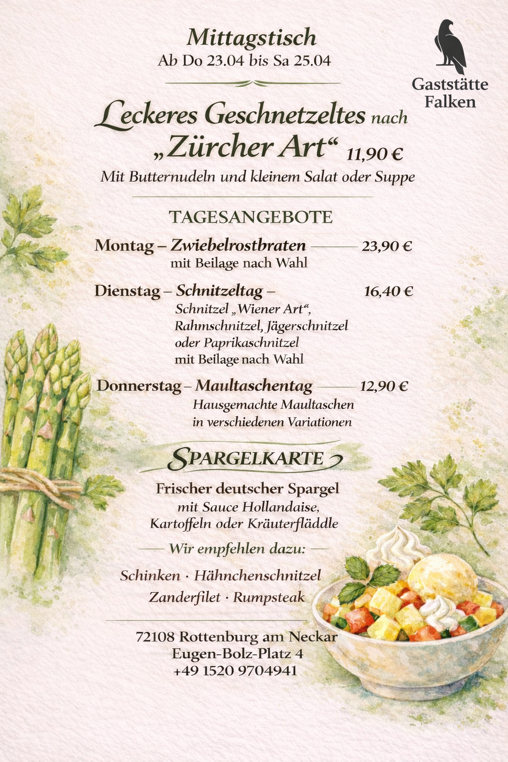 Mit frischer Energie und großer Leidenschaft führen Anastasiia und Tobias Wiech die Gaststätte Falken in Rottenburg am Neckar. Nach einer bewegten Zeit möchten wir das Traditionslokal wieder zu einem beliebten Treffpunkt für Genießer machen – mit ehrlicher Küche, herzlicher Atmosphäre und echtem Engagement.